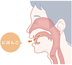 日本語を話すときのように、口からあるいは口の奥のあたりから息を吐いて話しても、空気[音源]が足りなく、