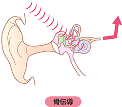 声の伝達経路には、空気の振動が鼓膜に伝わる「気導音」と、骨の振動が伝わる「骨導音」があります.