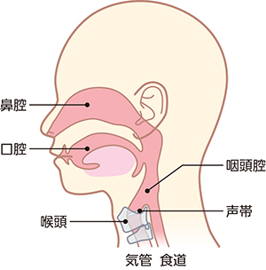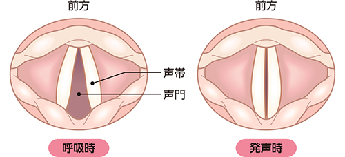 肺から押し出される空気が、気管を通り過ぎて、喉頭(こうとう)の中にある声帯と呼ばれるひだ