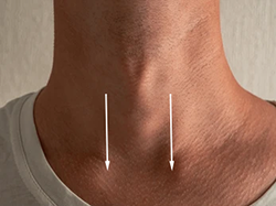 なお、意識して喉頭を下げる方法は筋肉を右図の白い矢印の
